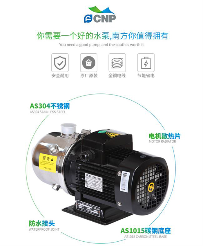 南方CHL,CHLK,CHLF(T)非自吸輕型臥式多級(jí)離心泵,葉輪導(dǎo)葉采用不銹鋼板沖壓焊接制成,配加長(zhǎng)軸電機(jī),軸向入口和徑向出口。
