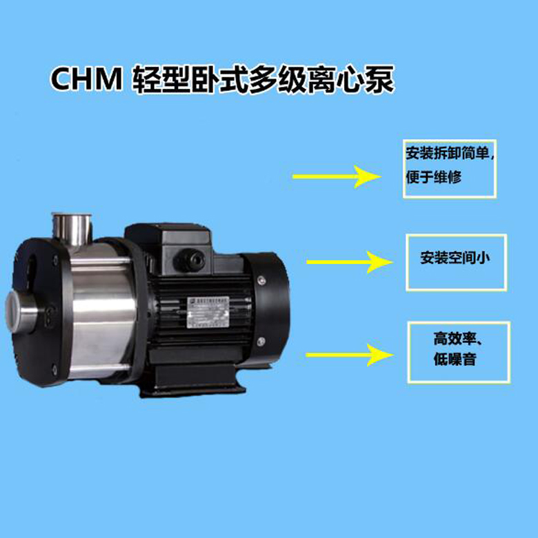 南方CHM 輕型臥式多級離心泵非自吸臥式多級離心泵,葉輪導葉采用不銹鋼板沖壓焊接制成,配加長軸電機,軸向入口和徑向出口。性能及優點:結構緊湊、高效率、低噪音、適用于輕度腐蝕性液體、安裝空間小、安裝拆卸簡單,便于維修